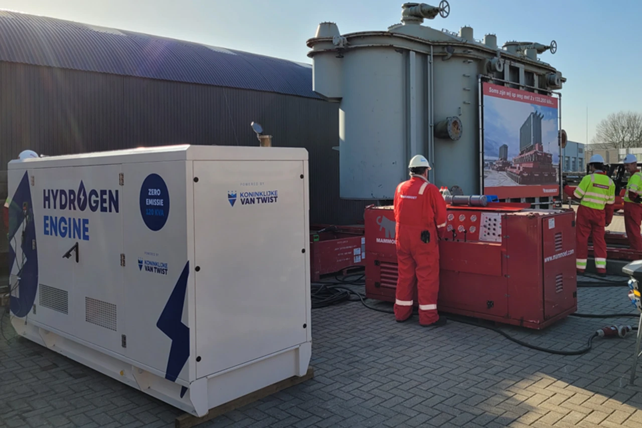 De waterstofmotor is ideaal voor inzet als generatormotor met continu gebruik bij off-grid bouwplaatsen en laadpleinen.